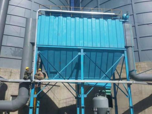 YMD-I型低壓噴吹脈沖除塵器由濾袋組件、導(dǎo)流裝置、脈沖噴吹系統(tǒng)、除灰系統(tǒng)、控制系統(tǒng)、離線保護系統(tǒng)、箱體等組成。脈沖布袋收塵器含塵氣體由導(dǎo)流管進入各單元室,在導(dǎo)流裝置的作用下,大顆粒粉塵被分離后直接落入灰斗,其余粉塵隨氣流均勻進入各倉室過濾區(qū),過濾后的潔凈氣體透過濾袋經(jīng)上箱體、提升閥排風管排出。當過濾袋表面粉塵達到 厚度時,濾袋內(nèi)外的壓差就會逐漸增加;當壓差達到設(shè)定值(由壓差儀控制時久來自貯氣罐的空氣就會迫使脈沖閥的膜片自動打開,輸送 量的空氣,通過風管由噴嘴噴入濾袋內(nèi),進行在線自動反吹清灰,抖落濾袋上的粉塵。落入灰斗中的粉塵經(jīng)卸灰閥排出后,利用輸灰系統(tǒng)送出。